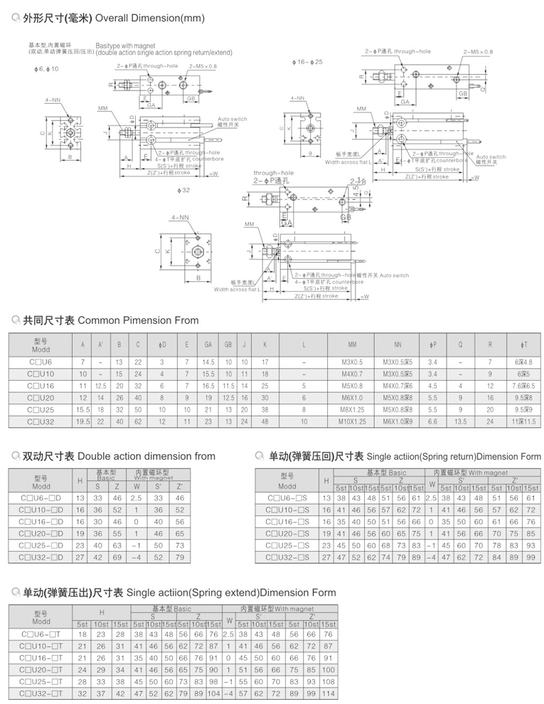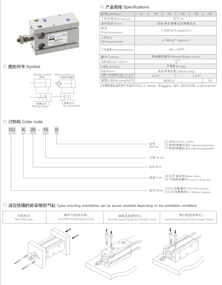 CU系列自由安裝氣缸