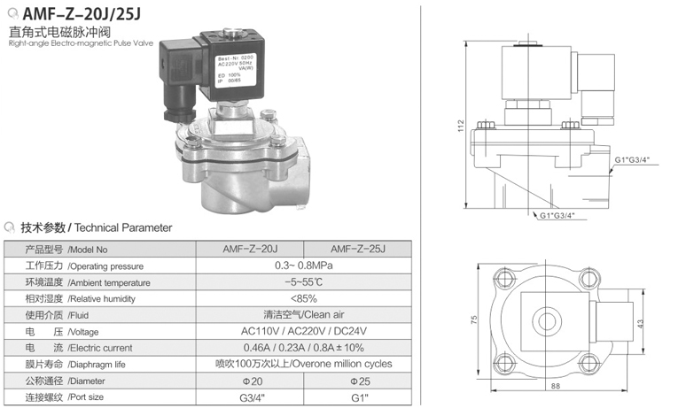 AMF-Z-20J/25J直角式電磁脈沖閥